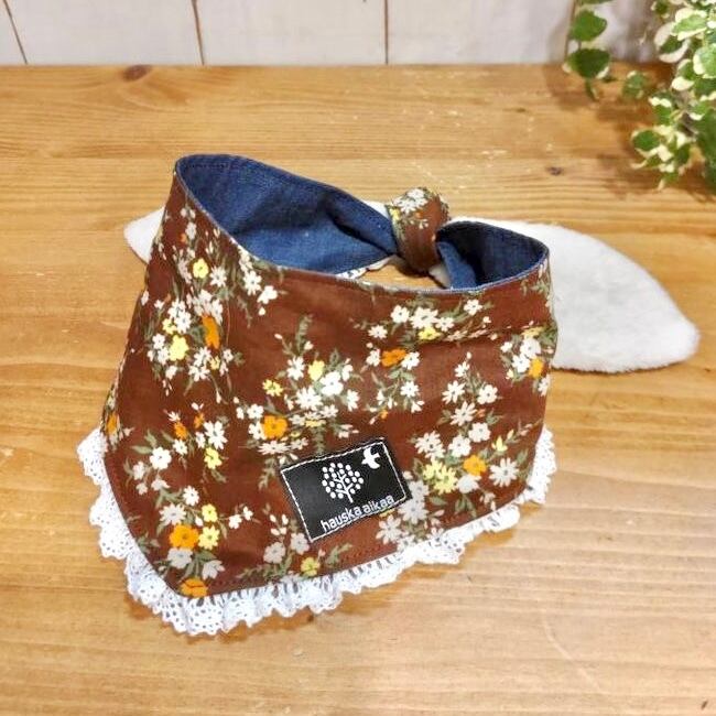 新作です!ブラウンベースの小花柄でリボン部分がファー生地で裏地はデニム調です。