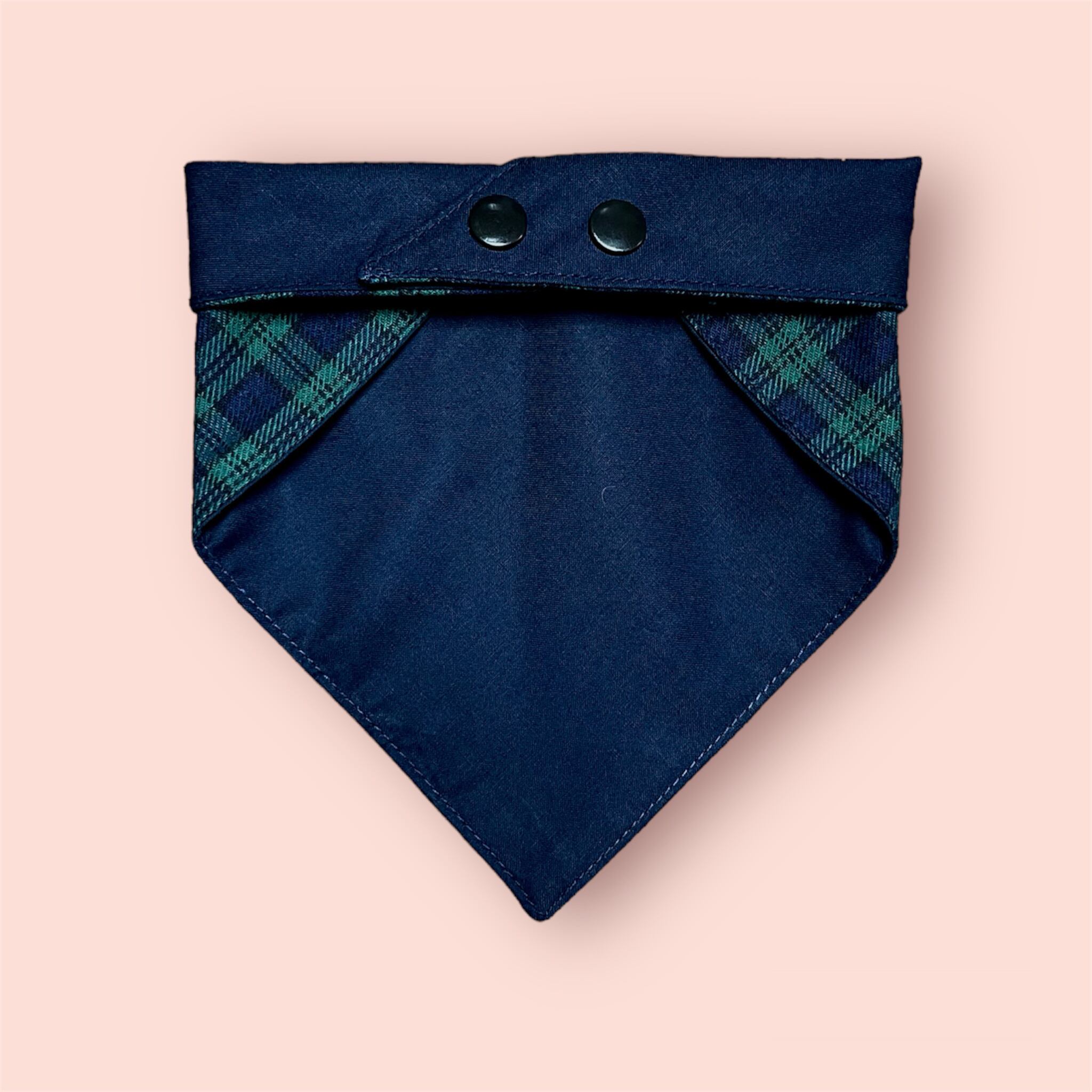 ドッグバンダナの定番タータンチェックの緑ベースのリバーシブル小型犬用サイズです。
