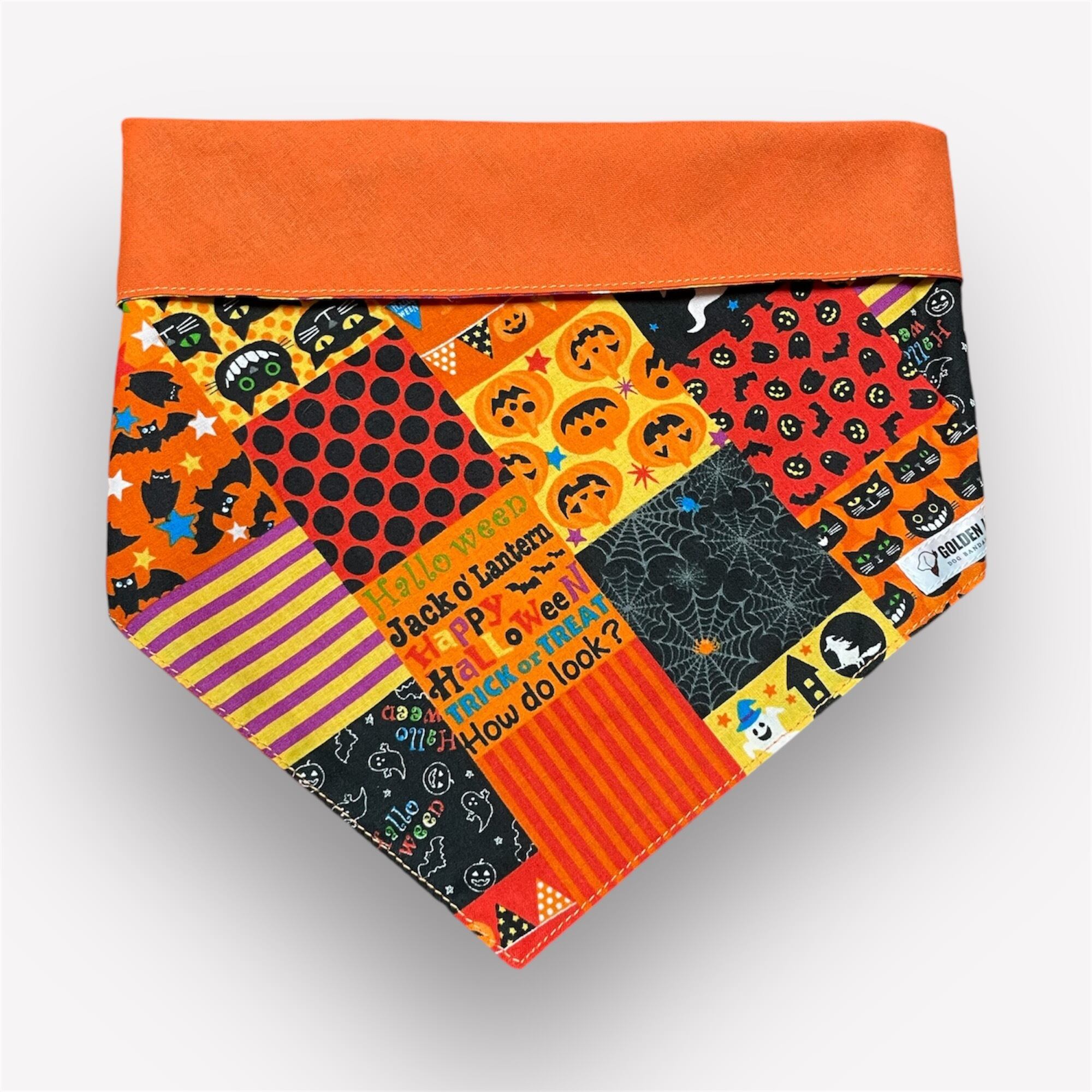 GOLDEN LIFEオリジナル・ハロウィン・リバーシブルバンダナ、超大型犬用です。